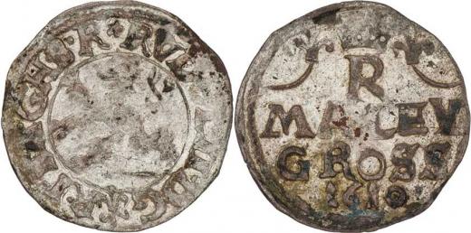 Malý groš 1610, K.Hora-Škréta, HN.19b (opis 7a), nápis " MALEY / GROSS / 1610 ", 0.891g, nep.nedor., nep.dvojráz, pěkná patina R!