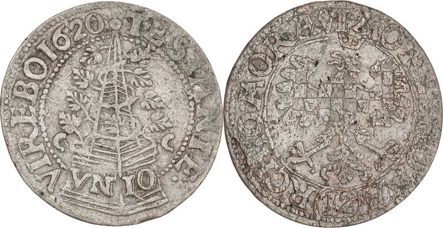 12 Krejcar 1620, Olomouc-Cantor, MKČ.618, ČS.352, 4.392g, dr.vada materiálu, nep.nedor., pěkná patina