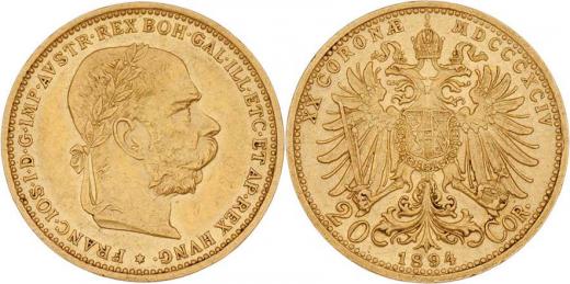 20 Koruna 1894, 6.764g, dr.hr., nep.rysky, patina