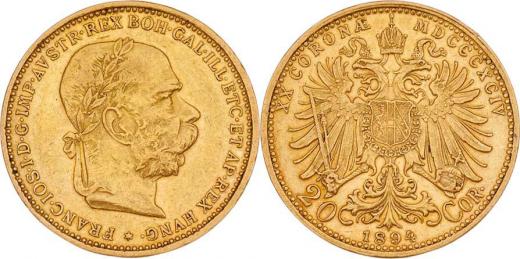 20 Koruna 1894, 6.768g, nep.hr., nep.rysky