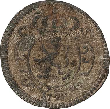 1/2 Krejcar 1727, Praha-Scharff, J.5e, MKČ.1846, 0.551g, mírně prohnutý, pěkná patina R!