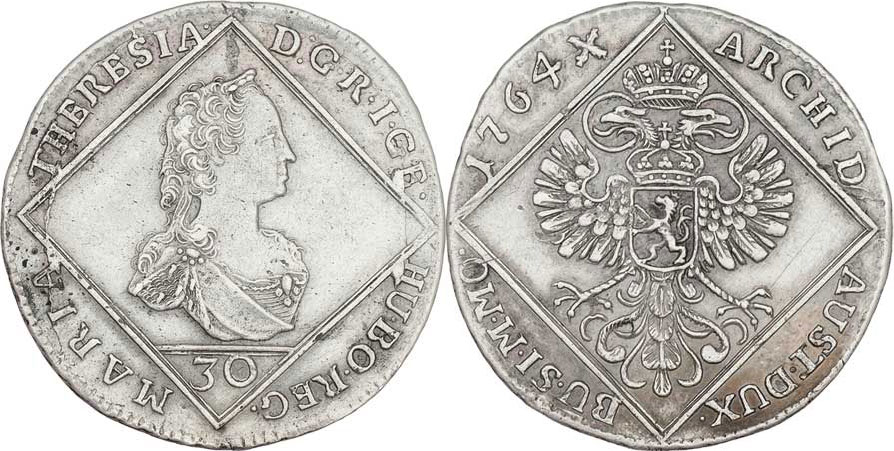 30 Krejcar 1764, Praha-Erdmann, N.29, MKČ.1948, 6.935g, dr.vady mater., vady razidla, rysky, patina