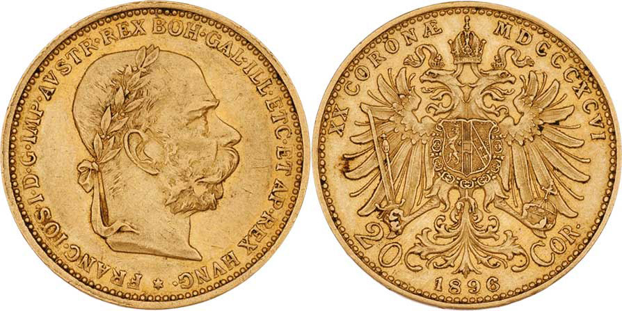 20 Koruna 1896, 6.765g, dr.hr., nep.rysky, patina