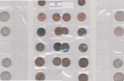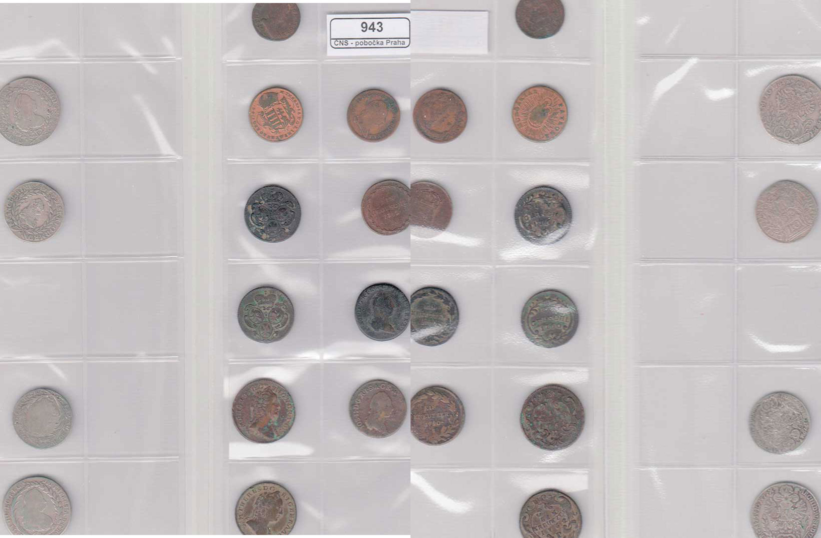 M.Terezie: 20 Krejcar 1777(Ag), 10 Krejcar 1779(Ag), 6 měděných mincí, František I.: 10 Krejcar 1759(Ag), Josef II.: 20 Krejcar 1768(Ag), 4 měděné mince 14ks