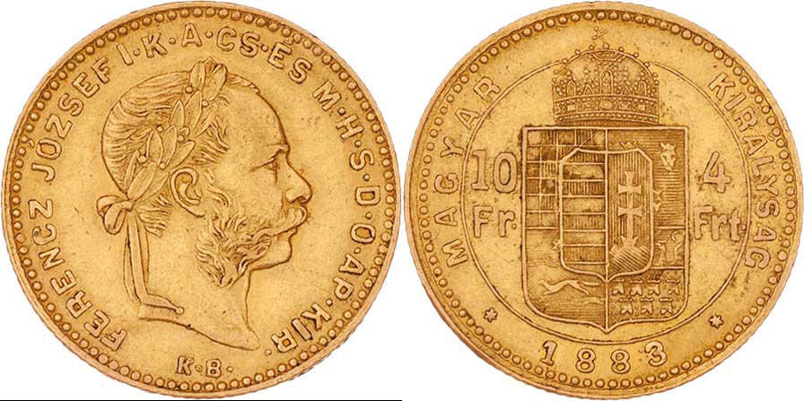 4 Zlatník 1883 KB (pouze 12.000 ks), 3.208g, nep.hr., nep.rysky, pěkná patina R!