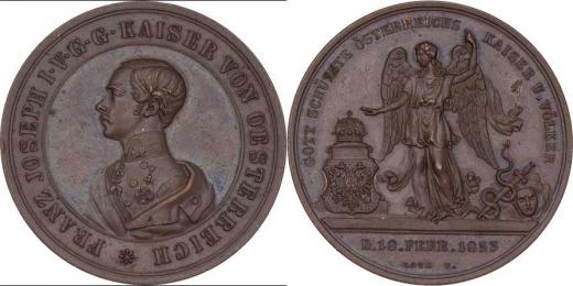 Roth - AE medaile na záchranu při atentátu 1853 - poprsí zleva, opis/ anděl strážný, znak, meč s hadem, písmo, 38mm, 27.331g, H.3760(AR), M.2666, nep.hr.