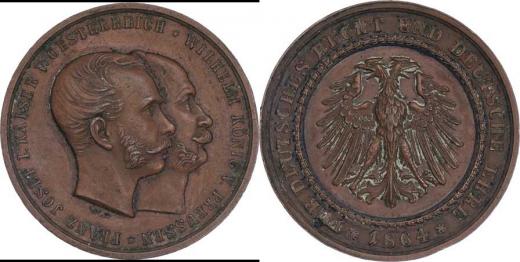 Seidan - na spojenectví s Pruskem proti Dánsku 1864 - dvojportrét zprava, opis / dvojhlavý orel, věnec a opis, Sign.WS, bronz 39mm, hr., nep.rysky, patina