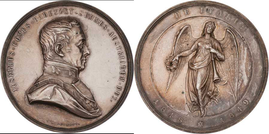I.M.Scharff - AR medaile na italská vítězství 1849 - poprsí zprava, opis/ Victoria zpředu s vavřín.věncem, opis, Sign., 57mm, 69.836g, Don.3682, M.2649, rysky