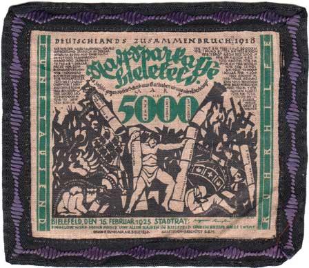 Bielefeld - 5000 Marek 15.2.1923, DN9.67.c, len s černofialovým vyšívaným orámováním