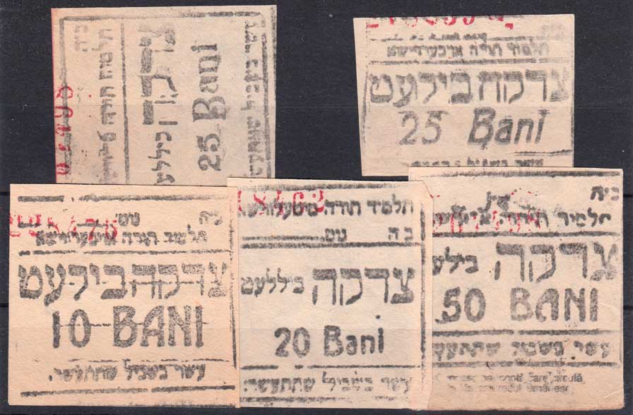 Muramures - Universul - 10,20,25,25,50 Bani b,l. (1924) - text psaný hebrejsky a rumunsky, číslov. 5ks