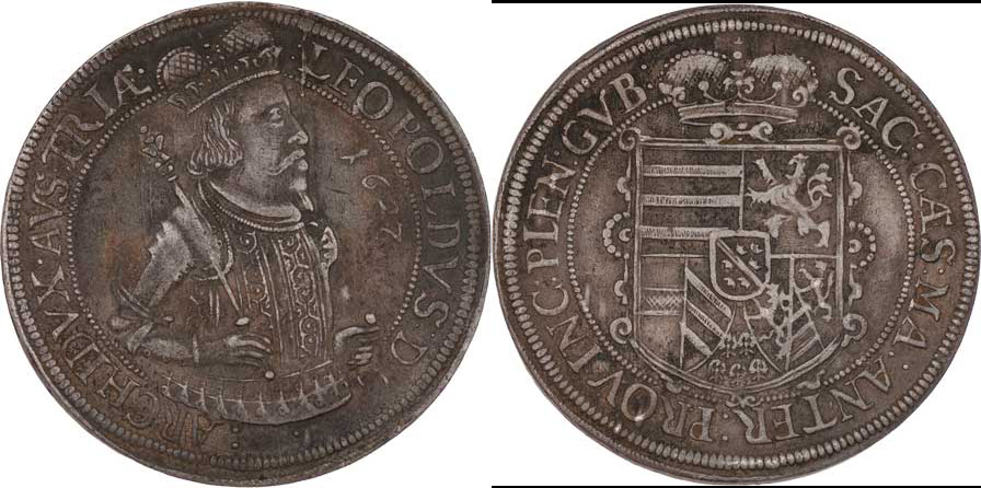Tolar 1627, Ensisheim, M-A.124, KM.267.4, M-T.612v, světský šat, letopočet vpravo, 27.985g, nep.nedor., nep.rysky, pěkná patina