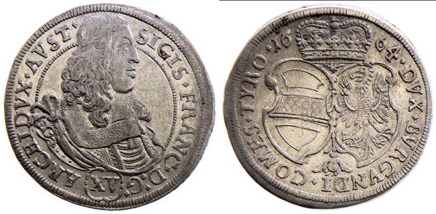 XV Krejcar 1664, Hall, M-A.163, 6.804g, pěkná patina