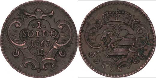 Cu Soldo 1767 H - Hall pro Gorici, N.225, M-A.268, 3.023g, skvrna, patina R!