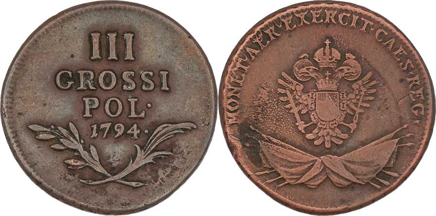 AE 3 Groš 1794 - armádní ražba pro Halič, 10.730g, hr., nep.rysky, pěkná patina