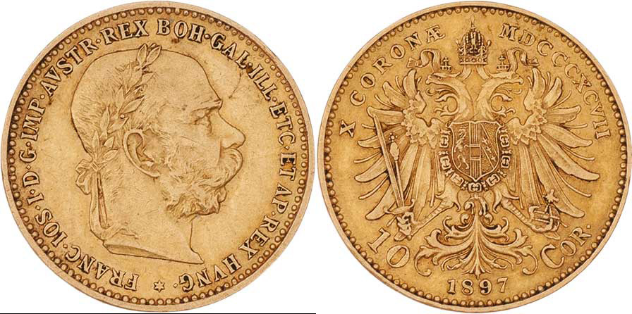 10 Koruna 1897, 3.380g, nep.hr., nep.rysky, patina