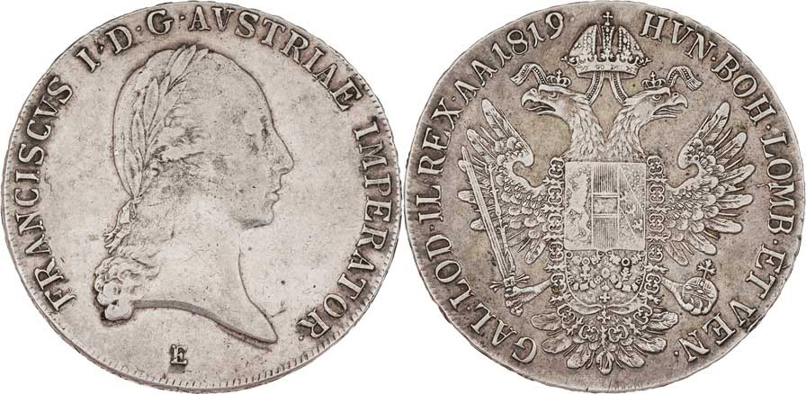 Tolar konvenční 1819 E, Karlovský Bělehrad, 27.973g, nep.hr., vlas.rysky, patina