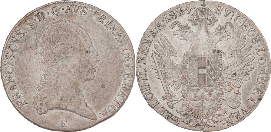 Tolar 1824 E, Karlovský Bělehrad, 27.868g, dr.hr., nep.just., dr.rysky, patina R!