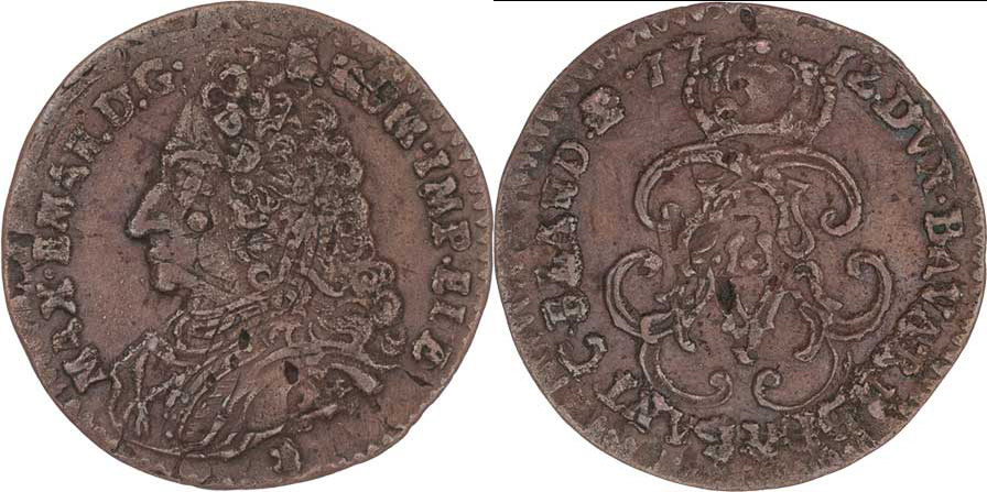 Liard 1712, Bruggy, M-A.212, 2.730g, dr.vady mater., pěkná patina R!