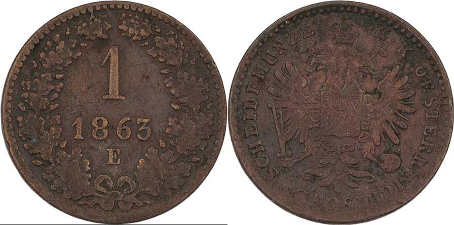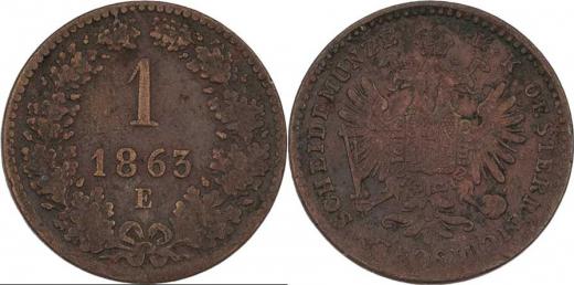 Krejcar 1863 E, 3.246g, nedor., dr.hr., patina RR!