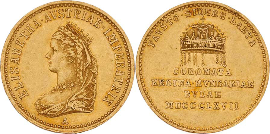Dukát 1867 A - na uherskou korunovaci - latinské opisy a nápis, P.31, Novák.XIX.C.5a, 3.472g, hr., vlas.rysky, pěkná patina