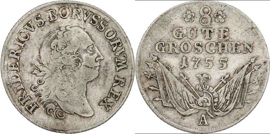 8 Groš 1755 A, Berlin, KM.274.1, 8.608g, dr.hr., dr.rysky, patina