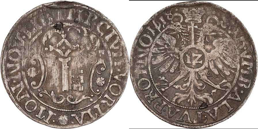 12 Krejcar 1618, podobný jako Sa.2150 (obr.1054), 4.020g, stopa po oušku, nedor., pěkná patina R!