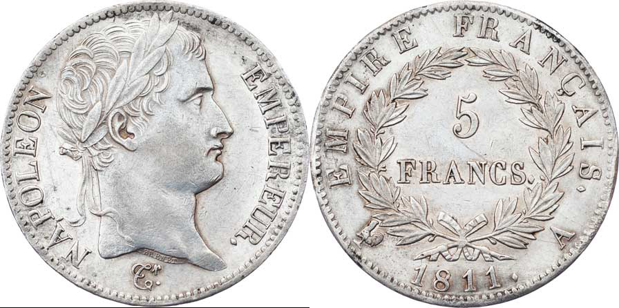 5 Frank 1811 A, Paříž, KM.694.1, 24.994g, dr.hr., dr.rysky