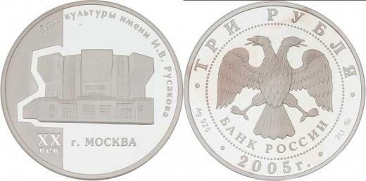 3 Rubl 2005 - Dům kultury I.V.Rusakova, Y.1038 (Ag925, 33.90g, kapsle, skvrny R!