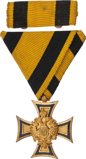 Služební kříž za 40 let - typ 1890, Marko.370d, VM.2/8-1869-B, vypouklý velký státní znak, původní stuha a malá stužka 2ks