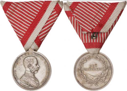Malá stříbrná medaile za statečnost, Marko.228a, VM1.5-IX-D, typ 1867, Sign.TAUTENHAYN, Punc."A", široké vysoké (elipsovité) ouško, původní stuha