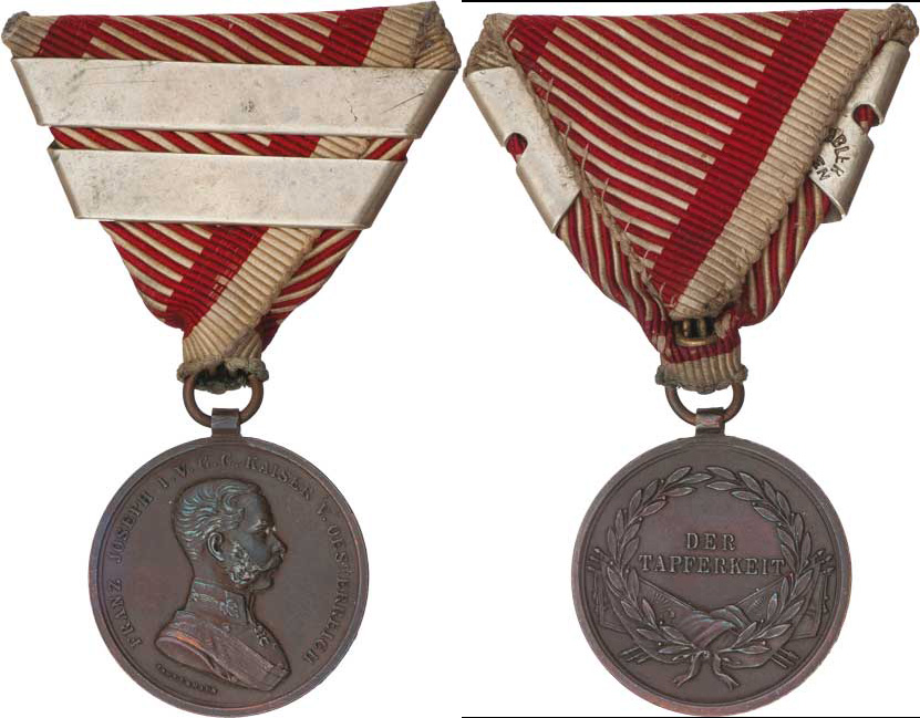Bronzová medaile za statečnost, Marko.232a, VM1.11a, Sign.TAUTENHAYN, na hraně nápis "2/98 FELDKOMPAGNIE", na stuze dvojitá páska sign."ZIMBLER-WIEN"