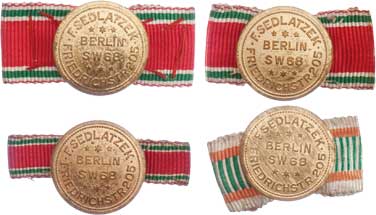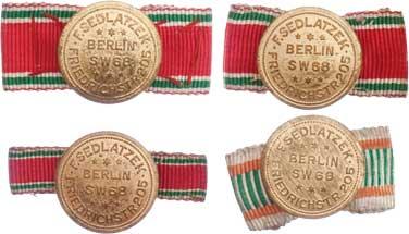 Spona 6ks vyznamenání, řetízek 6ks miniatur, spona 6ks malých stužek, 4x knoflíkové soubory stužek, Sign.Friedrich Sedlatzek-Berlin, vzácné, krásně