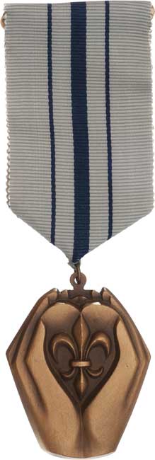 Skaut - Medaile skautské vděčnosti, Nesign., patinov. bronz 38x49 mm se závěsem a stuhou, původní etue