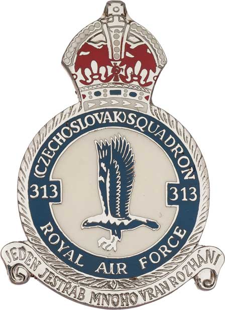 Sdružení čsl.zahr.letců (1939-1945) - 313.peruť RAF - b.l. (patrně 1999), Nesign., smaltovaný odznak 35x49 mm s upínacím šroubem, podložkou a maticí