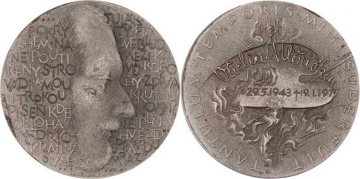 Václav Měřička mladší - AR úmrtní medaile 1977 - hlava zprava, nápis / malířská paleta, opis a nápis, Sign., Punc., patin. Ag900, 50mm, 65.254g, nep.rysky