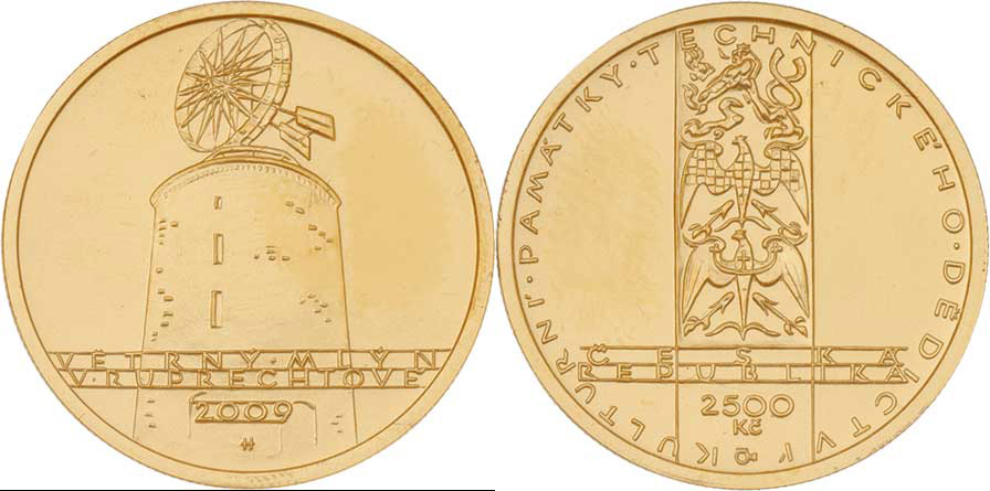 2500 Koruna (1/4 Unce) 2009 - Větrný mlýn Ruprechtov, KM.111 (Au999, 3.500 ks), 7.797g, kapsle, etue, karta