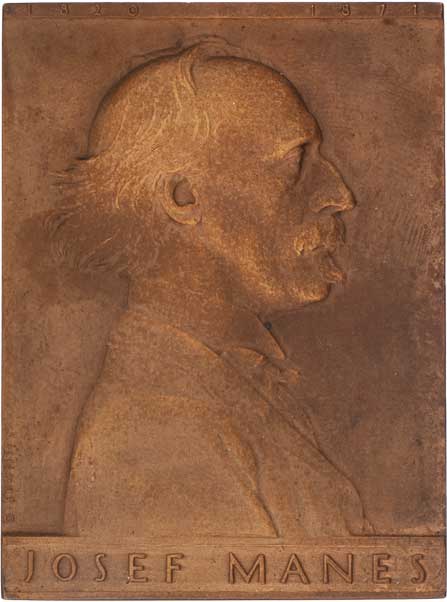 Josef Mánes - pamětní plaketa b.l. (1919) - poprsí zprava, nápisy, Sign., patin. bronz 48x64 mm, OŠ.174