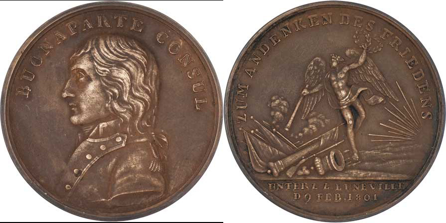 Nesign. - AE medaile na mír v Luneville 1801 - poprsí zleva, opis / personifikace Míru, písmo, Sign., bronz 39mm, 28.712g (pozdější ražba), patina, téměř