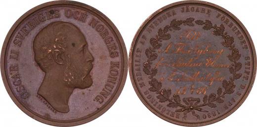 Švédsko (uděleno 1886) - Oscar II. zprava, opis / udělení v dubovém věnci a opis, Sign.Lea Ahlborn, bronz 34mm, 18.888g, krásná patina