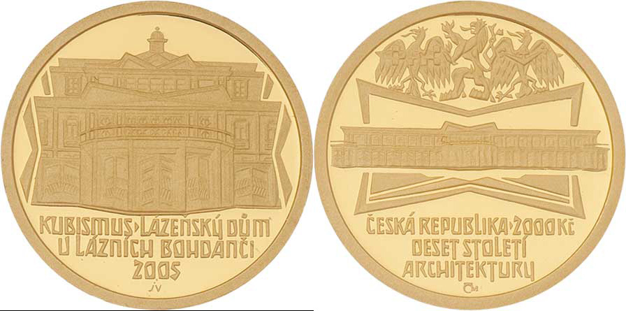 2000 Koruna 2005 - Lázeňský dům v Lázních Bohdaneč, KM.87 (Au999, 6.22g, 2.996ks), kapsle, etue, karta