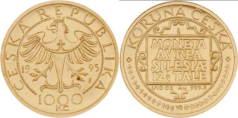 1000 Koruna (1/10 Unce) 1995 - české mince, KM.18 (Au999, pouze 2.000 ks), 3.123g, kapsle, etue, karta