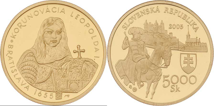 5000 Koruna 2005 - korunovace Leopolda I., KM.83 (Au900, 9.50g, pouze 7.500ks), kapsle, etue, text, přebal