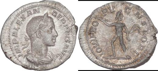 AR Denár, Rv:"IOVI.PROPVGNATORI.", Jupiter kráčející doleva, podobný jako S.2110, RIC.236 - mincovna Řím - ražba z let 231-235, nepravidelný okraj, pat., téměř