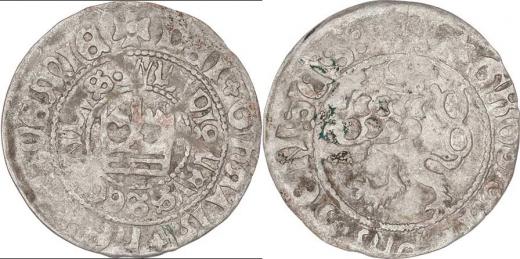 Pražský groš, Kutná Hora - Blažek Dráb, Há.XII.e/7 - varianta - navíc tečka na začátku vnitřního opisu, 2.418g, exc., nedor., patina