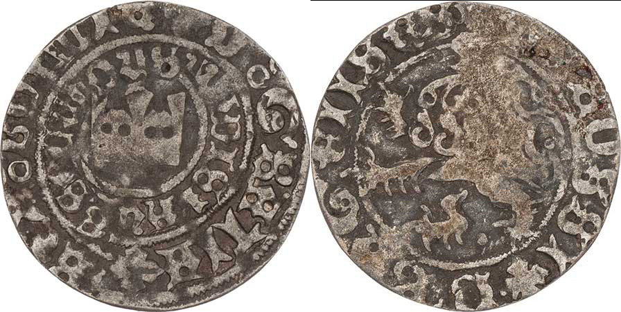 Pražský groš, K.Hora - Hanuš z Řásné, Há.XXV.a/1 - varianta vnějšího opisu "D : GRATIA ....", 2.102g, exc., nedor., dvojzáz, patina, mírně okrájený RR!