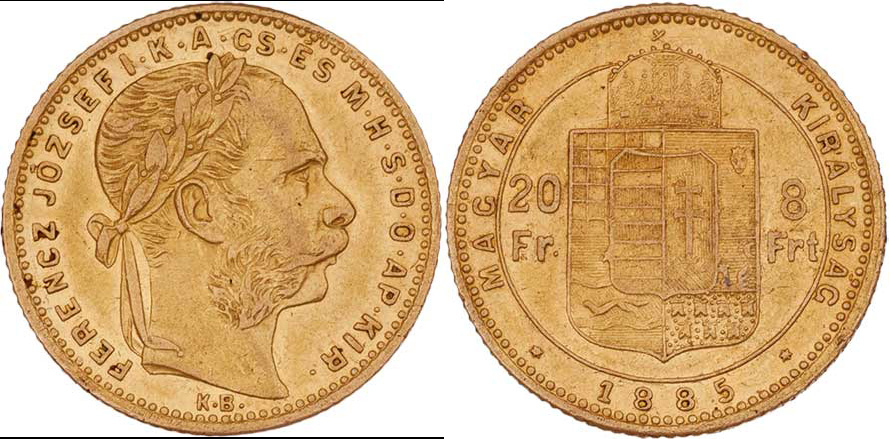 8 Zlatník 1881 KB (6.432g), 1885 KB (6.430g), nep.hr., nep.rysky, pěkná patina 2ks