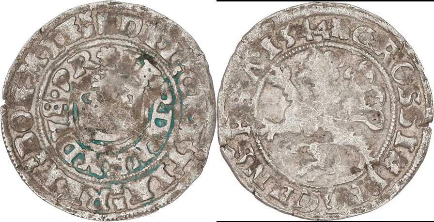 Pražský groš 1544, K.Hora-Hubáček, Chv.7/a.K, královská koruna, J.4, MKČ.71, 2.894g, nedor., skvrnky, patina