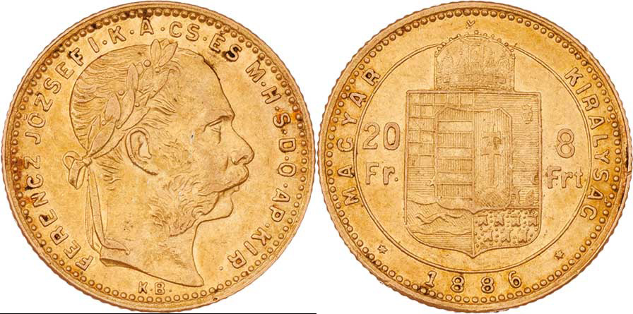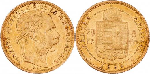 8 Zlatník 1886 KB, 6.438g, nep.hr., nep.rysky, pěkná patina
