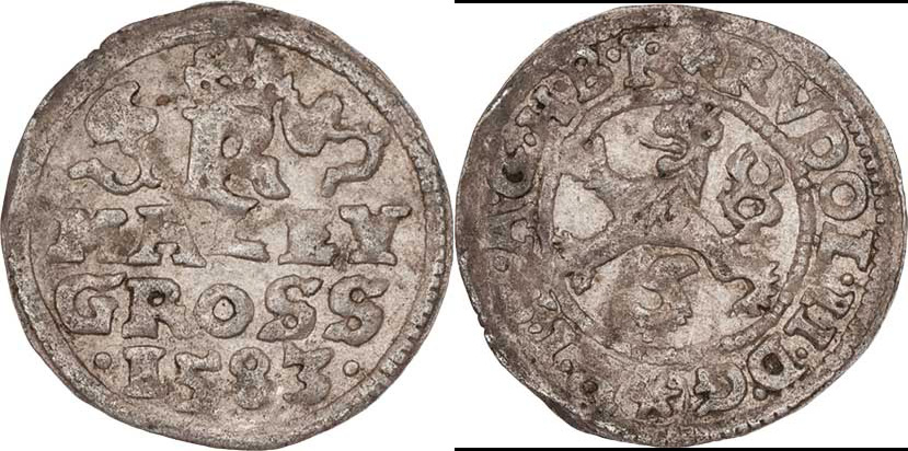 Malý groš 1583, Č.Budějovice-Schönfeld, HN.16b (7a), nápis " MALEY / GROSS /. 1583 .", 0.753g, nep.nedor., pěkná patina