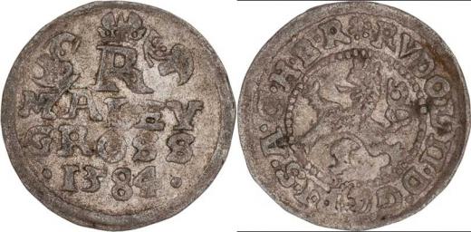 Malý groš 1584, Č.Budějovice-Mattighoffer, HN.24a (7a), nápis " MALEY / GROSS /. 1584 .", 0.932g, nep.nedor., pěkná patina